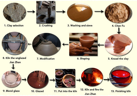 - Kiln and fire the Jian Zhan. The kiln is the most important process of making Jian Zhan. If the time, degree and frequency of reduction are not well mastered, the desired glaze color will not be successfully created. After put into the kiln, the master must be concentrate on controlling the degree of reduction and not leave for a long time.